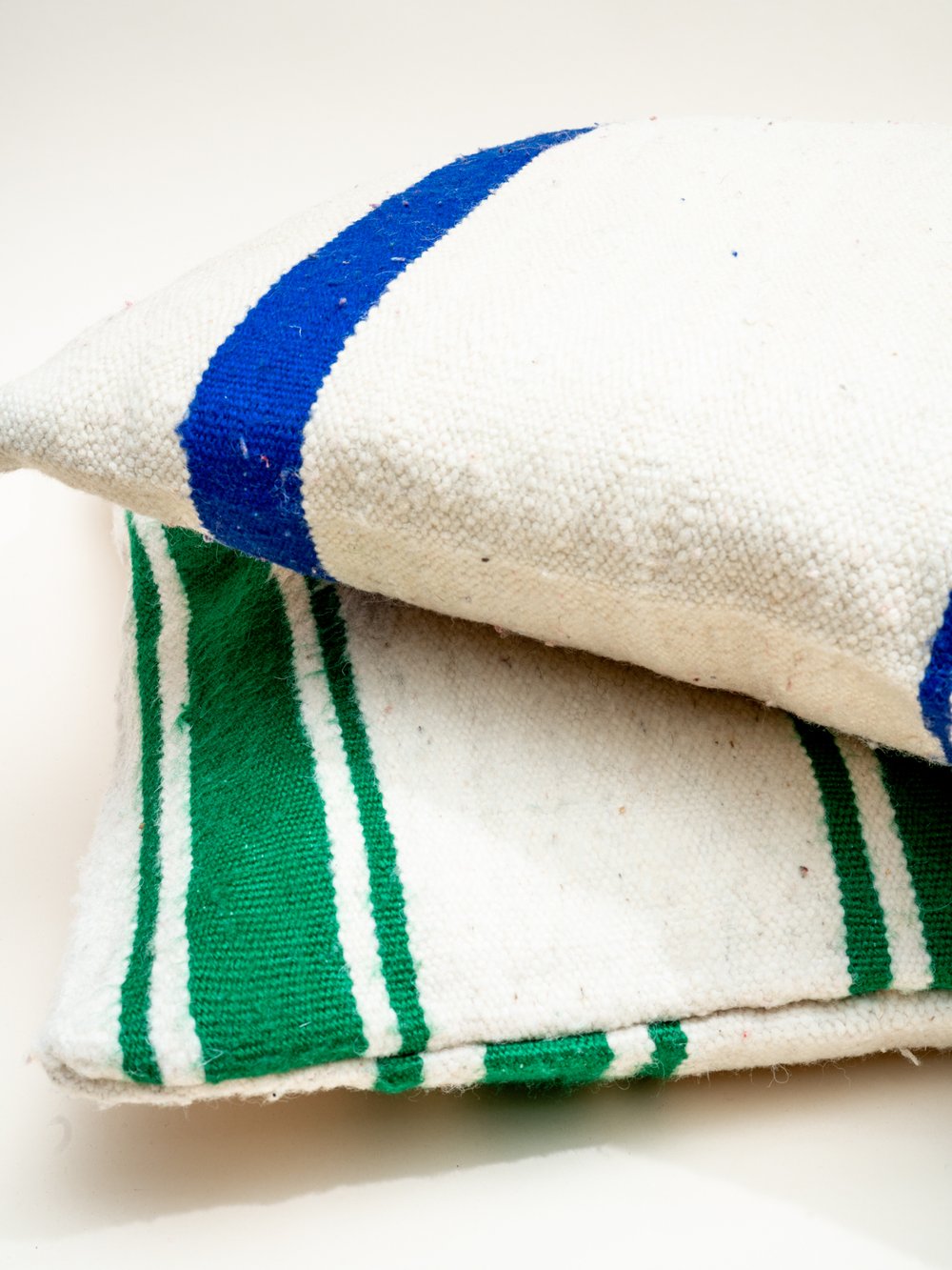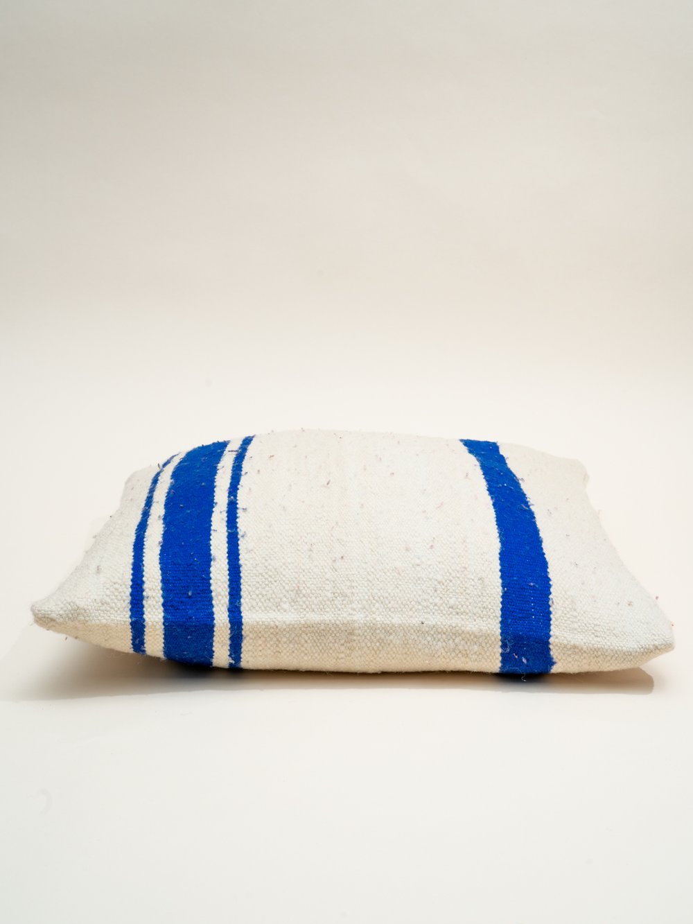 Made from vintage Moroccan wool blankets that could no longer be used as bedding. Each cushion is cut from a different part of the blanket, making every piece slightly different in stripe placement and tone.