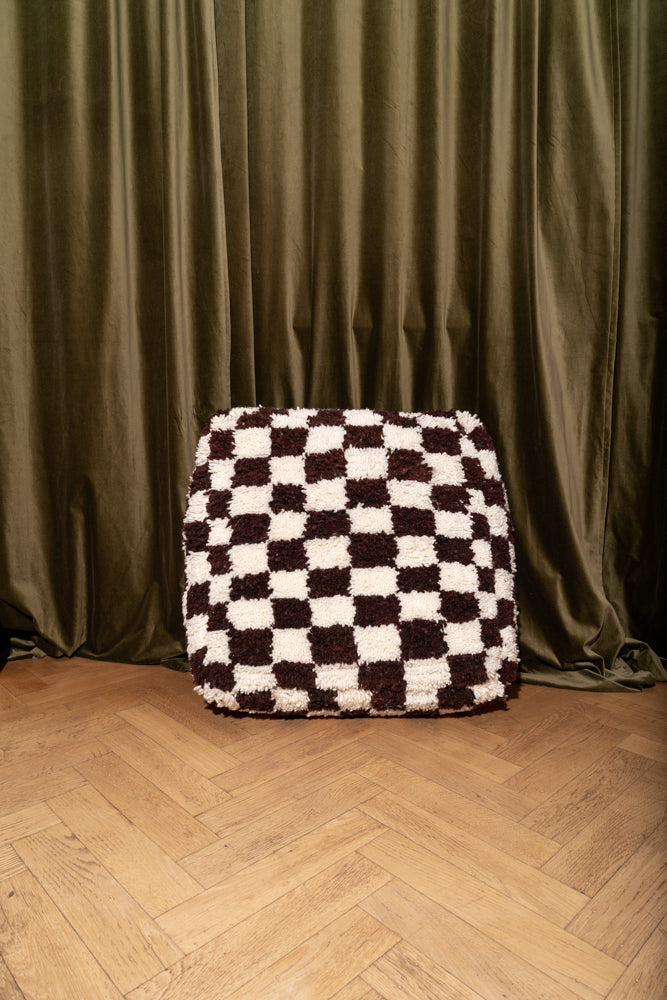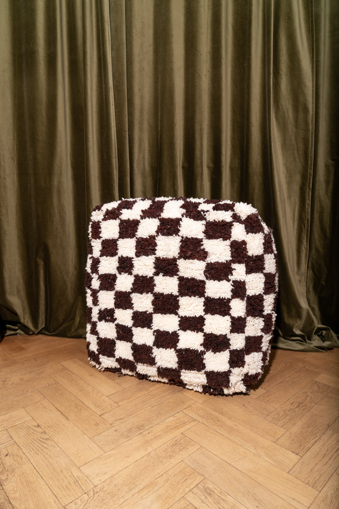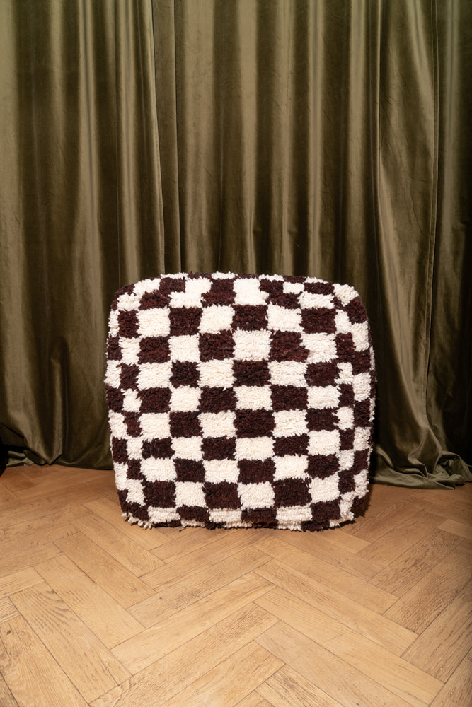 Wool checkered pouf, handmade from Moroccan boujaad rugs