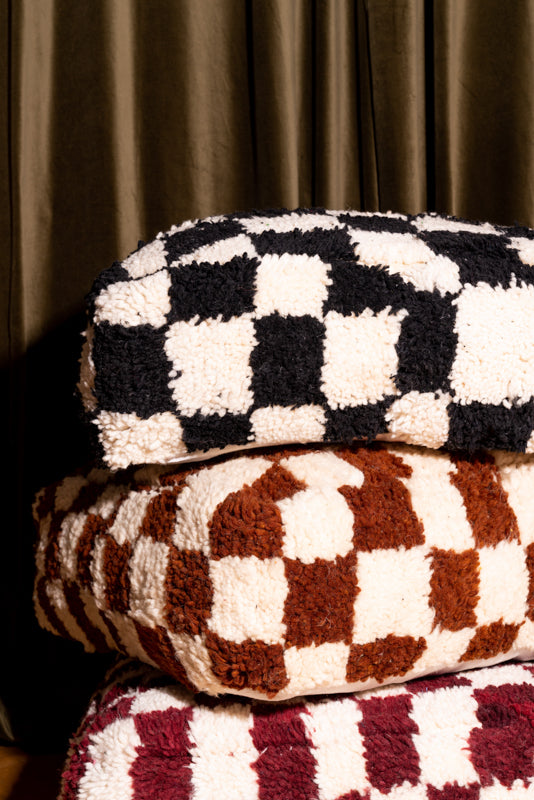 Checkered Pouf in Black