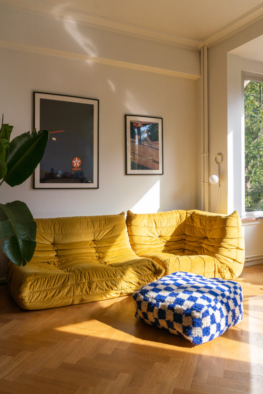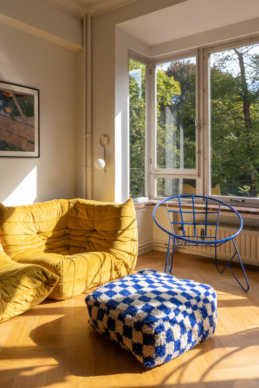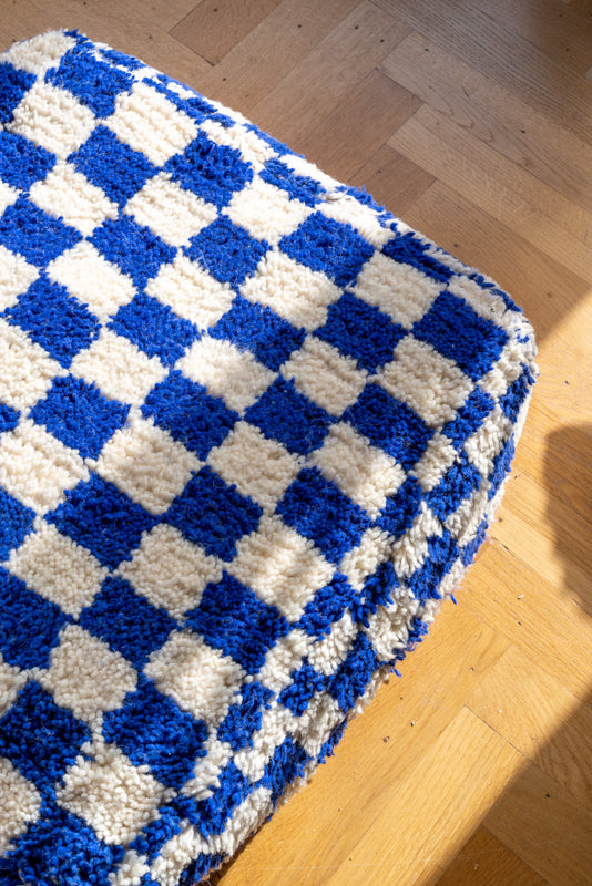 Checkered Pouf in Blue