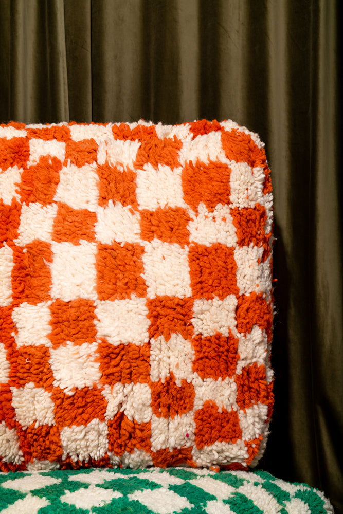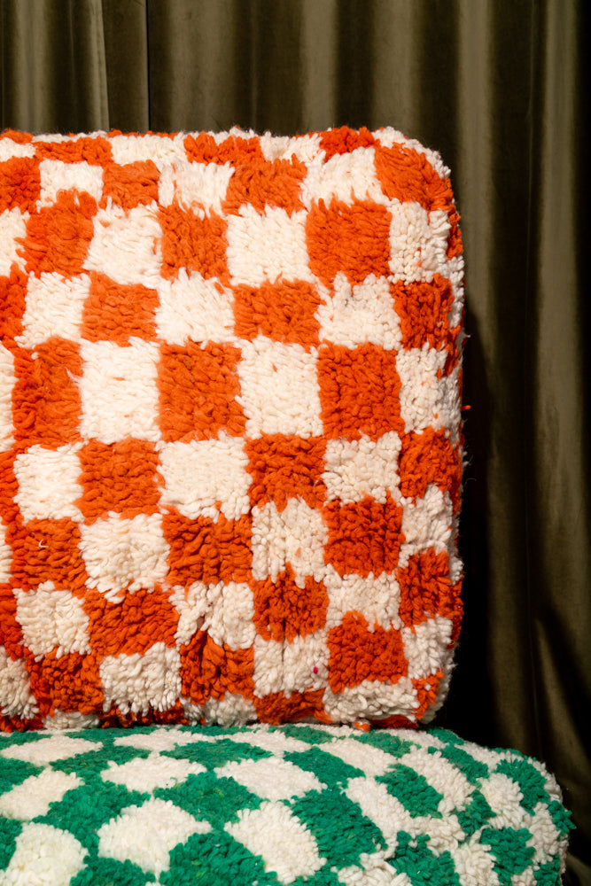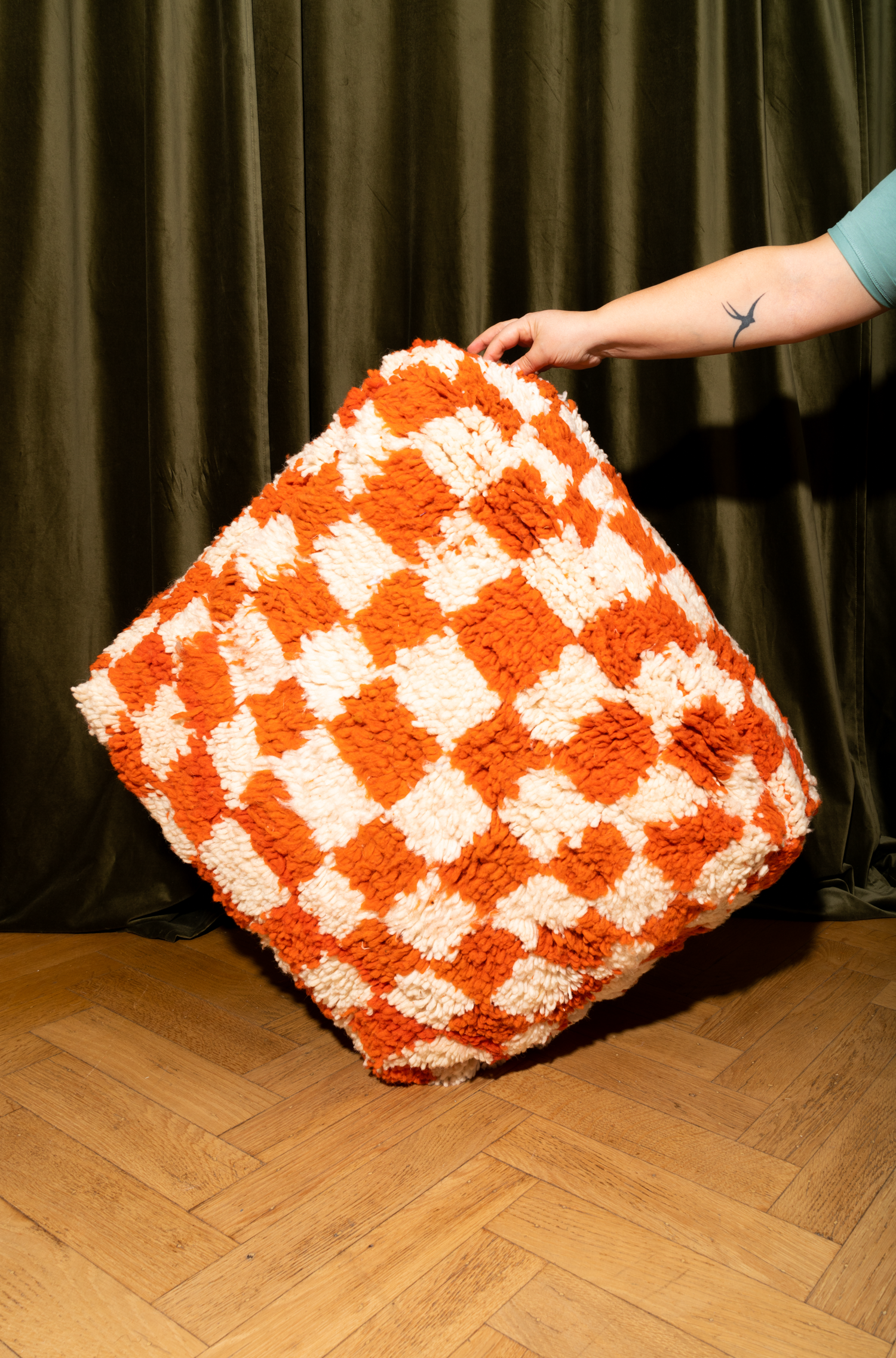 Wool checkered pouf, handmade from Moroccan boujaad rugs