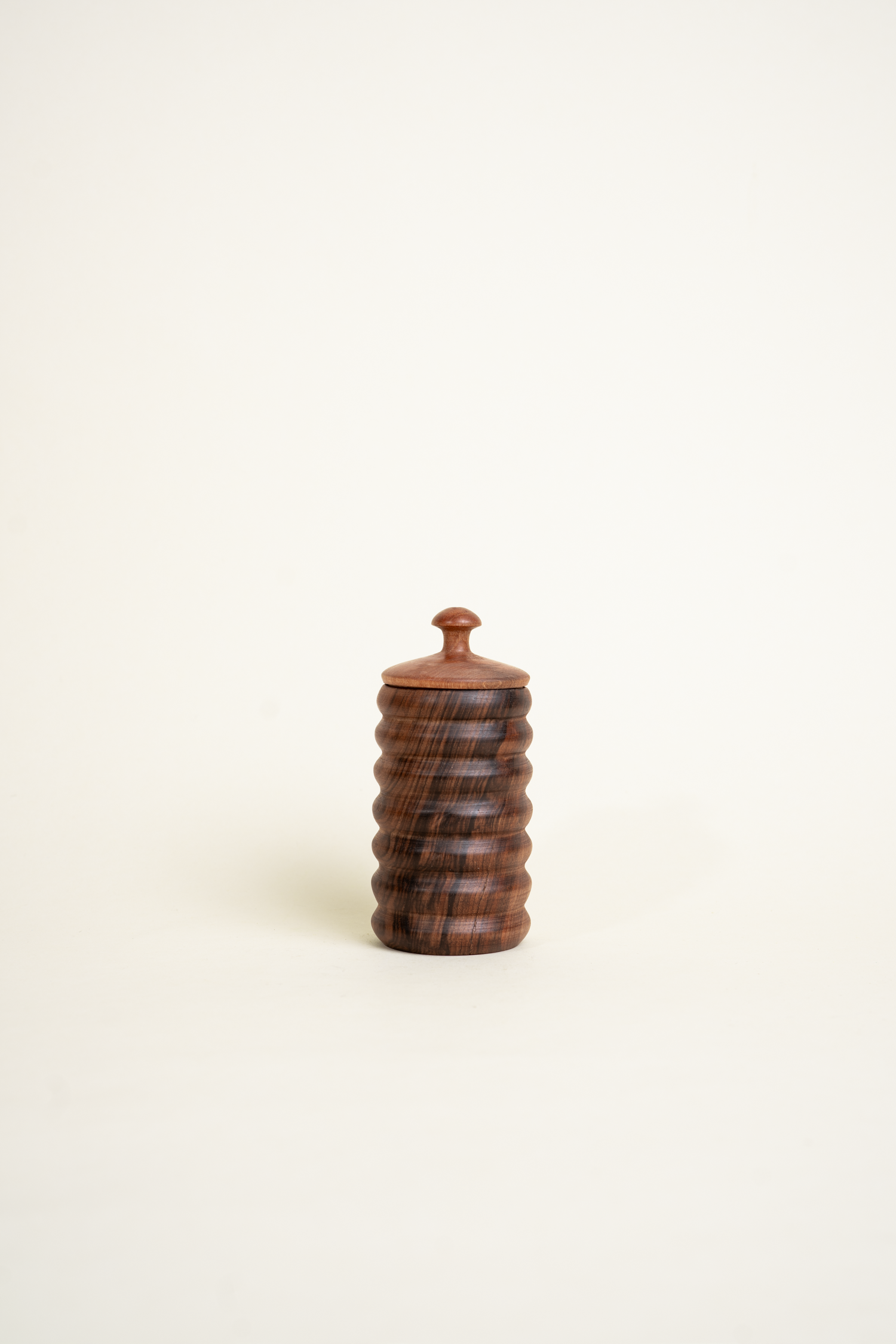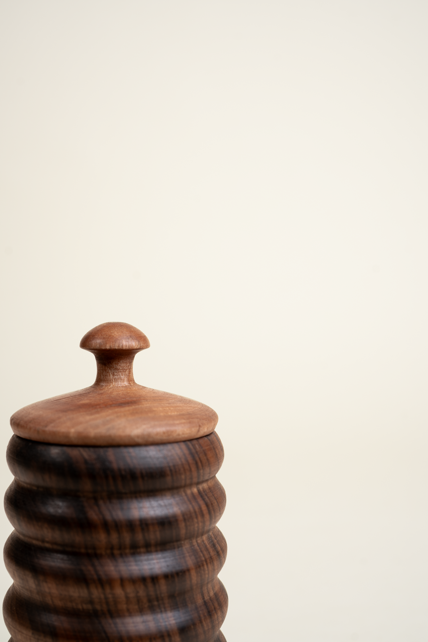 Carved with a rhythmic series of ridges, Ripple is a tactile piece that catches the light and feels good in the hand. Its tall, sculptural form makes it a functional accent, perfect for coarse salt, dried herbs, or simply to display.